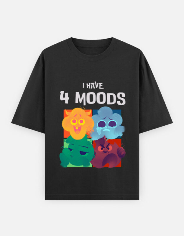 I Have 4 Moods – Funny Cartoon Characters T-Shirt -Dark