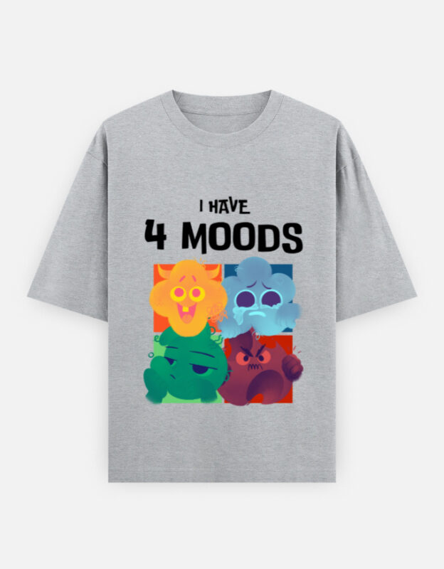 I Have 4 Moods T-Shirt – Funny Cartoon Emotion Characters Tee – Light